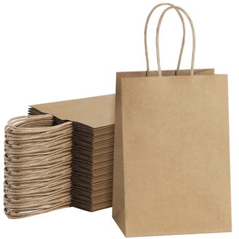 Asas trenzadas reforzadas fuertes Paquete de 50 bolsas de papel Kraft Bolsa de papel personalizada Dinosource efectivamente bilingüe